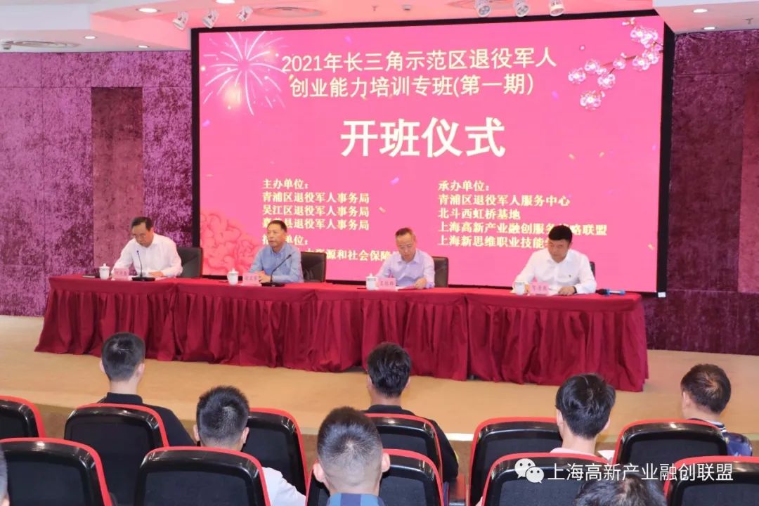 5月24日,由青浦、吳江、嘉善三地退役軍人事務局主辦,北斗西虹橋基地、上海高新產業融創服務戰略聯盟(簡稱融創聯盟)承辦的2021年長三角示范區退役軍人創業能力培訓專班(第一期)開班典禮,在北斗西虹橋基地多功能廳舉行。