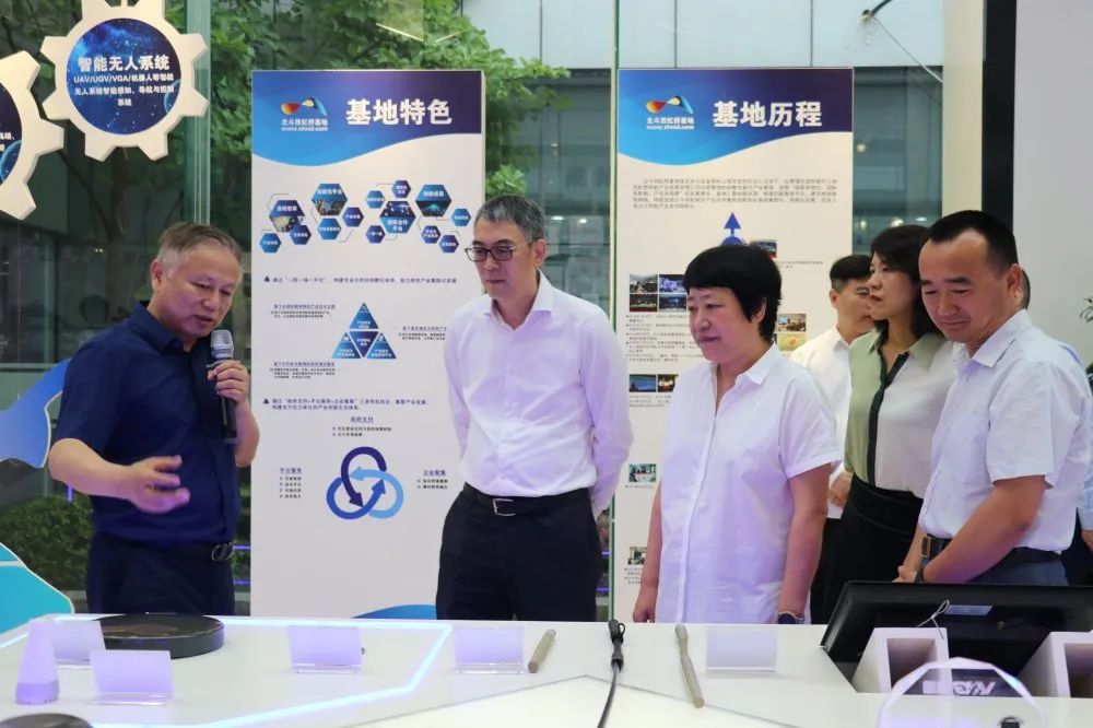 在郁文賢的帶領下,領導一行參觀了園區展廳,察看企業重點產品,了解企業最新的發展情況和存在的困難問題,鼓勵基地要營造良好產業生態,繼續全力服務企業發展。調研期間,趙惠琴書記一行對北斗西虹橋基地的建設成果表示認可。未來,基地更要拿出比學趕超爭一流、搶拼實善攀高峰的發展勁頭,緊抓“十四五”產業發展紅利及數字化改革新機遇,堅持精準融合、高端引領,以標準化建設助推區域經濟高質量發展。