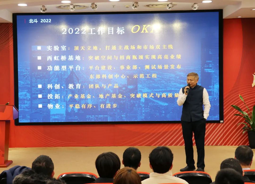 即將過去的2021年辛丑牛年,國家政治經濟與北斗產業發展戰略的不斷變遷為北斗西虹橋基地帶來了巨大機遇與挑戰。北斗西虹橋基地各板塊在郁文賢院長的帶領下,中流擊水、科學布局,規劃未來藍圖,有效推動了“一個園、一條鏈、一個平臺”奮勇向前。2022年1月21日,北斗西虹橋導航聯合年會在基地多功能廳隆重召開。“新冠”疫情自入冬以來,國內多地省市均有波動。響應國家的號召,此次北斗西虹橋基地2022年度員工大會也是“從簡”,但依舊不失精致、氣氛滿滿。