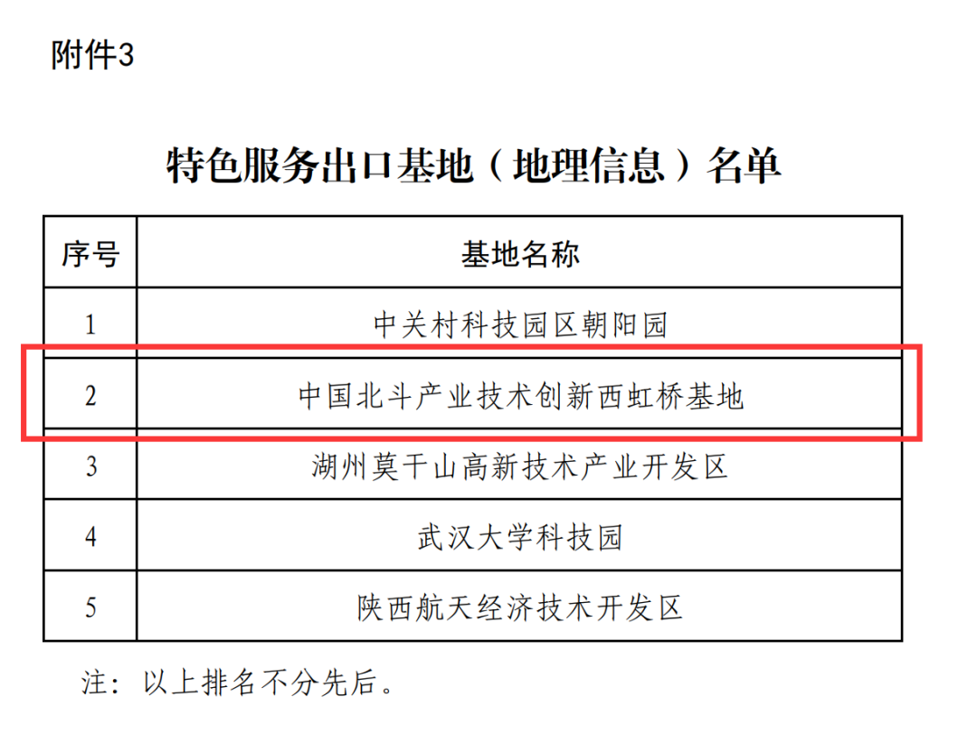 商務部、中央宣傳部、教育部、自然資源部、人力資源社會保障部、知識產權局、中國外文局等7部門開展的人力資源服務、地理信息服務、知識產權服務和語言服務等4個領域特色服務出口基地評審認定工作,經地方申報、省市商務和相關領域主管部門初審推薦、第三方機構客觀指標評審、專家評審、部門工作組復核等程序,于3月22日公布基地名單。中國北斗產業技術創新西虹橋基地獲評為首批地理信息服務領域特色服務出口基地,本次公布名單全國僅5家。