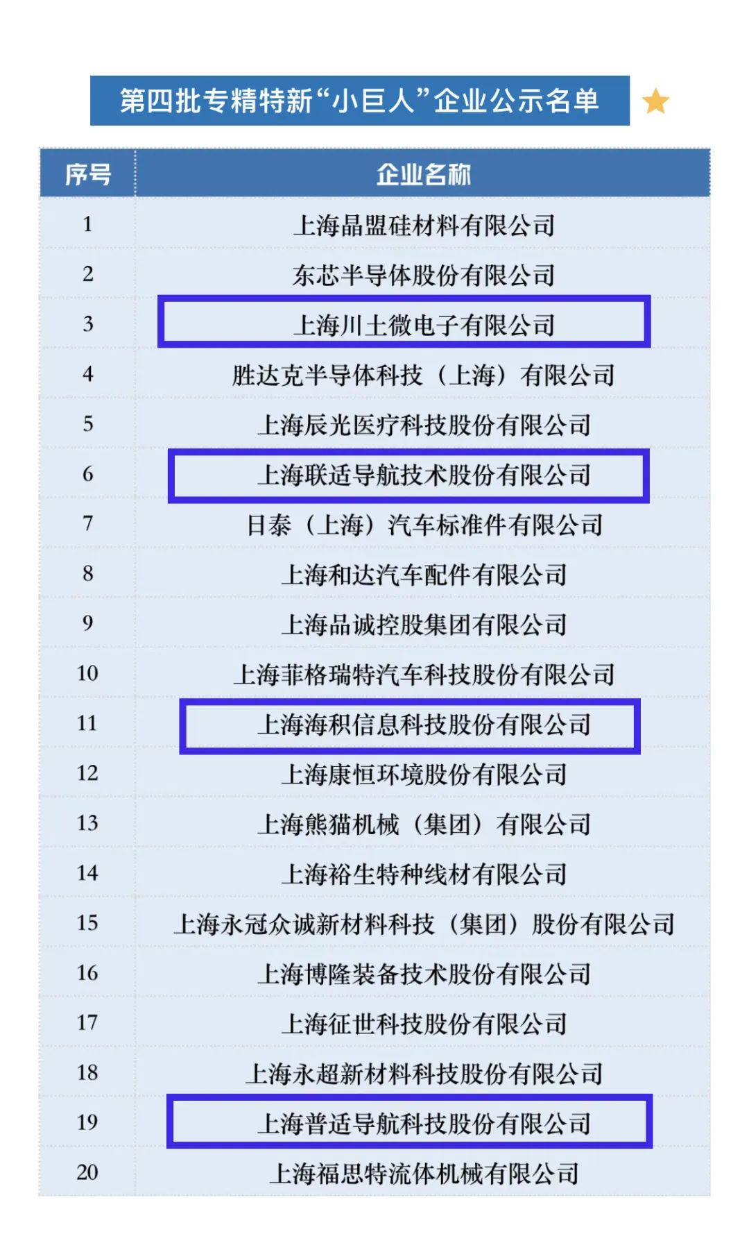 2022年8月8日,上海市經(jīng)濟和信息化委員會對我市通過審核的企業(yè)名單進行了公示,北斗西虹橋基地企業(yè)上海川土微電子有限公司、上海聯(lián)適導航技術股份有限公司、上海海積信息科技股份有限公司、上海普適導航科技股份有限公司等4家企業(yè)入圍,青浦區(qū)企業(yè)名單如下: