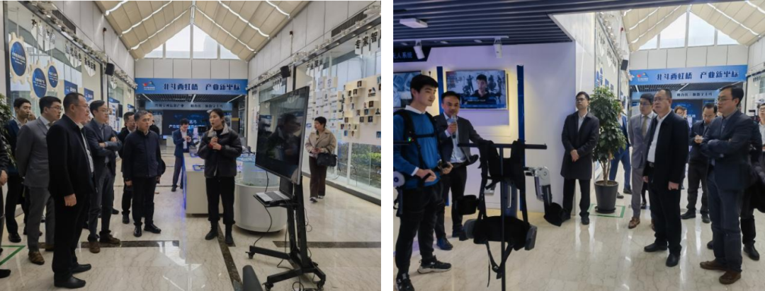 張毅恭一行首先參觀了北斗西虹橋基地展廳,基地副總裁孔吉介紹了“一核兩翼”產(chǎn)業(yè)布局和北斗導(dǎo)航核心部件、終端產(chǎn)品、軍民融合成果、海洋應(yīng)用以及無(wú)人系統(tǒng)、空間大數(shù)據(jù)相關(guān)場(chǎng)景及產(chǎn)品,基地企業(yè)上海奧研信息科技有限公司技術(shù)工程師麻阿丹介紹了激光全景機(jī)器人、傲鯤智能科技(上海)有限公司總經(jīng)理錢基鳴介紹了外骨骼機(jī)器人等產(chǎn)品情況。