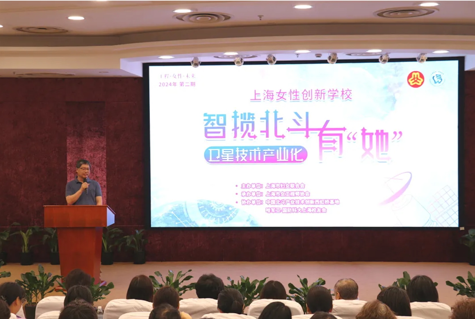 6月5日,由上海市婦女聯合會主辦,上海市女工程師協會承辦,哈軍工-國防科大上海校友會、中國北斗產業技術創新西虹橋基地協辦的上海女性創新學校“工程﹒女性﹒未來”專項2024年第二期——“智攬北斗,衛星技術產業化有‘她’”專題創新課堂,在北斗西虹橋基地順利舉行。