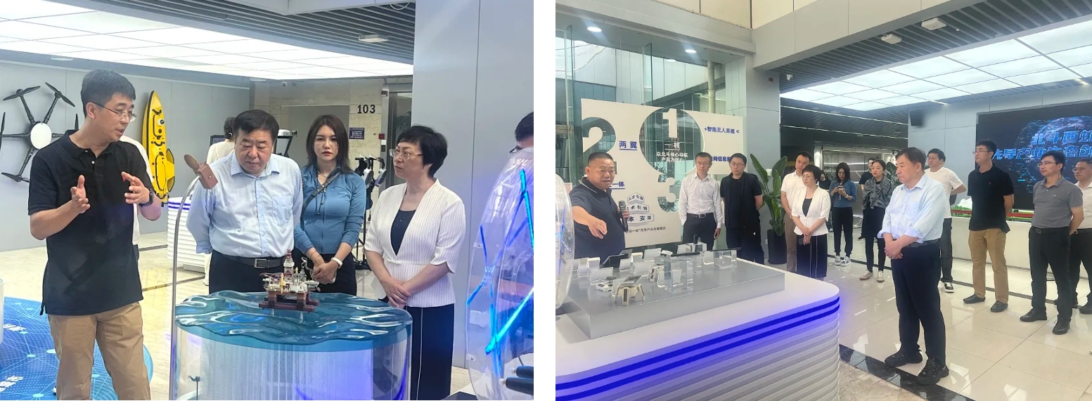 調研團一行參觀基地展廳,詳細了解園區發展狀況,參觀了全產業鏈代表企業與產品,并圍繞民營科創園區高質量發展中完善中小微企業創新生態、集聚各類創新資源等重點方面現場交流。