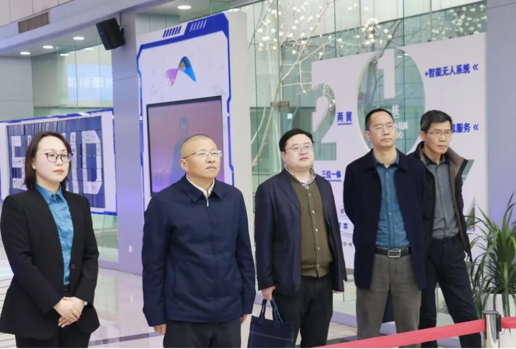 調研團一行參觀北斗西虹橋基地展廳,詳細了解基地企業在北斗導航高精度技術研發與產品應用情況,深入了解了北斗衛星定位技術在大眾化市場應用推廣和新科技產品研發上取得的成果,并對基地平臺建設發展成果給予高度評價。