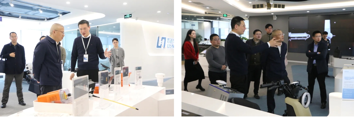 隨后前往基地企業普適導航進行參觀調研。普適導航相關負責人陪同調研團參觀企業創新研發產品展廳,并詳細介紹了公司發展歷程。普適導航最早從北斗漁船定位終端起步,到利用衛星遙感能力做水生態環境監測,再到進一步融合光譜、時空大數據、人工智能等技術,在水務和水環境監測領域持續深挖,在入河(海)排污口排查、管網雨污混接普查等政府關注的重點項目中,屢次通過研發新裝備,融合新技術,采用新模式進行作業,最終都取得了突出項目成果。以此次調研活動位契機,雙方表示將進一步加強合作交流,共同推動國內北斗導航產業高質量發展。