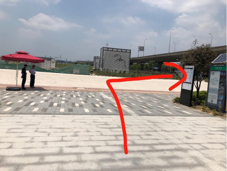 3、右轉(zhuǎn)后沿著人形道路直行 50 米