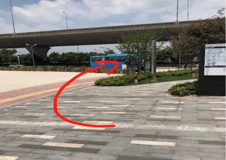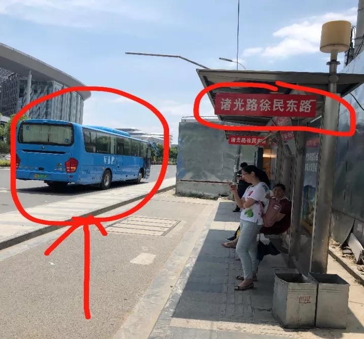 4、到達(dá)公交站臺(tái)諸光路徐民東路站后,左前方即是班車停放點(diǎn)